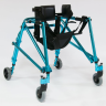 Ходунки на четырех колесах реверсивного типа предназначены для детей-инвалидов, страдающих различными формами ДЦП, способствуют устранению нарушений осанки и патологической установки стоп, помогают удерживать равновесие при ходьбе и стоянии.