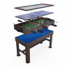 Игровой стол-трансформер DFC BERYL 13-in-1, размером 48" (дюймов), представляет собой домашний развлекательный центр, который превращается в 13 различных игр. Вентилятор, работающий от сети 220В, обеспечивает плавное скольжение шайбы аэрохоккея по игровому полю. Игровой стол предлагает следующие развлечения: Аэрохоккей (2 биты и 2 шайбы, механический счетчик) Стрельба по мишеням (5 мишеней, 1 бластер и 5 дротиков) Plink shot (4 мячика) Гольф (1 клюшка, 2 флажка, 2 мяча) Шахматы Шашки Нарды (шашки и 5 игральных костей) Баскетбол (кольцо с сеткой, мяч с насосом, сетка для возврата мяча) Bean bag (метание мешков) (3 мешка для игры и 1 сетчатый мешок) Стрельба из лука (лук и колчан, 3 стрелы) Дартс (6 дротиков с присосками) Боулинг (1 шар, набор кеглей) Настольный пальчиковый футбол (2 треугольника, 2 пары ворот)