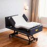 Кровать для лежачих больных с матрасом имеет электрический привод, благодаря которому можно изменять положение ее секций в зависимости от потребностей больного. Модель имеет четыре секции и пять функций. Положение секций можно легко регулировать, фиксируя в нужном положении. Максимально возможная нагрузка на кровать составляет 200 килограмм, ее собственный вес – 120 кг.