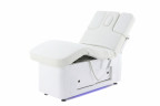 Стол имеет несколько секций и 4 мотора для удобной настройки положения подвижных частей ложемента. Мягкое ложе создаёт высокий уровень комфорта во время процедуры, а широкий диапазон настроек позволяет мастеру качественно выполнить любую задачу. Надёжная рамка из стали выдерживает до 150 кг, что гарантирует безопасность и долгий срок службы изделия.